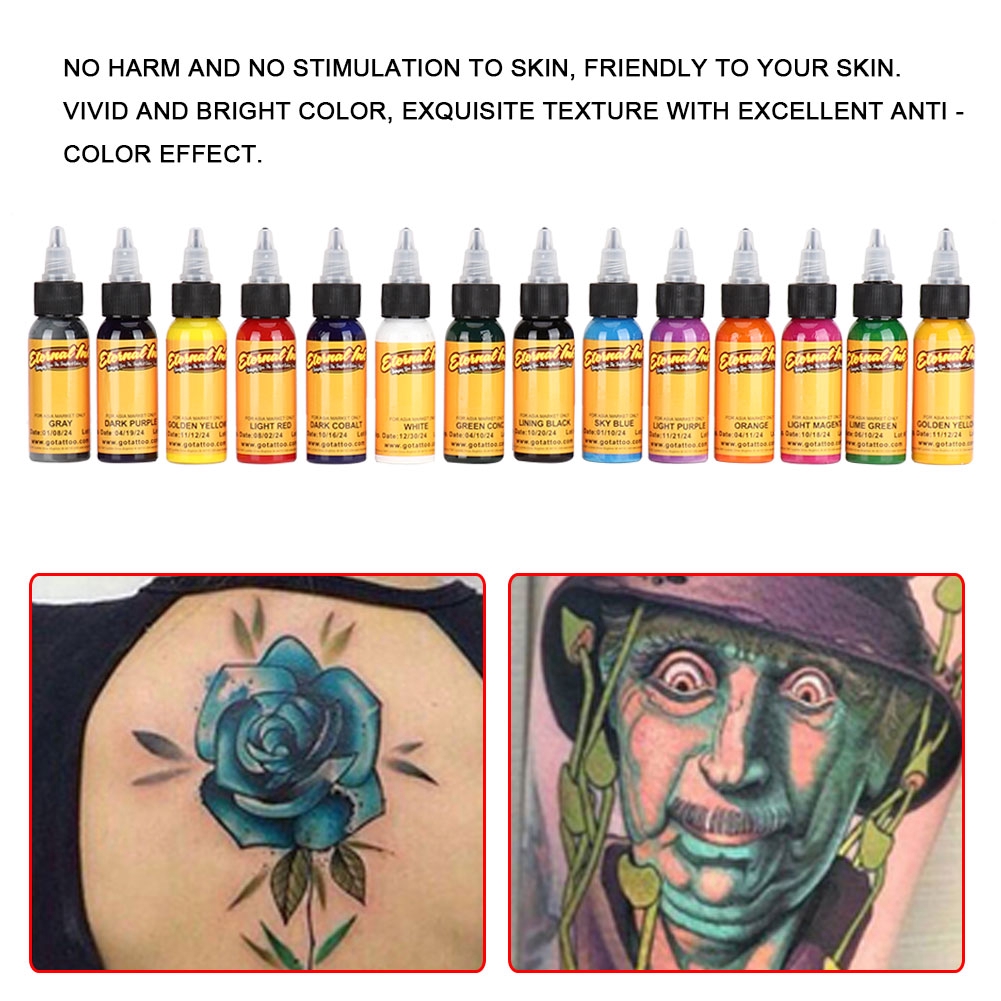 Xunb 14pcs Professional Tattoo Ink Longlasting Semi Permanent